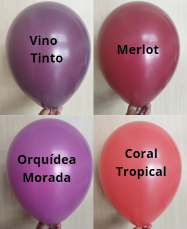 Tamaño del globo: 29 cm (12”) de diámetro. Gama de colores estándar, colores opacos sin brillo.